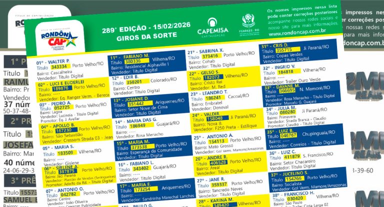 RondônCAP 289: confira os ganhadores do sorteio deste domingo