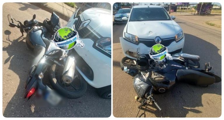 Motociclista bateu de frente com um carro, apresentava sinais de embriaguez, não possuía CNH e recusou o bafômetro; motorista do carro foi liberado após teste negativo.