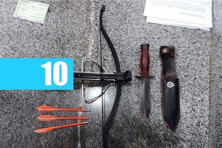 O homem estava com uma besta, mesma arma usada no ataque em Suzano