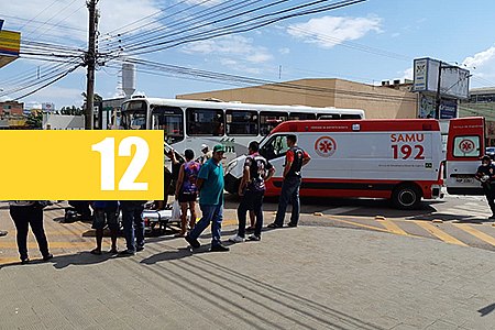 ÔNIBUS COLETIVO ATROPELA CASAL EM MOTOCICLETA QUE INVADIU A PREFERENCIAL