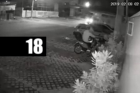 No vídeo, o exato momento em que os dois homens chegam no local em uma moto modelo XRE, sendo que o garupa desce e invade a loja, de arma em punho, realizando cerca de cinco disparos de arma de fogo.
