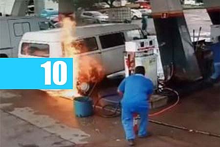 VÍDEO MOSTRA MOMENTO EM QUE KOMBI PEGA FOGO EM POSTO DE GASOLINA