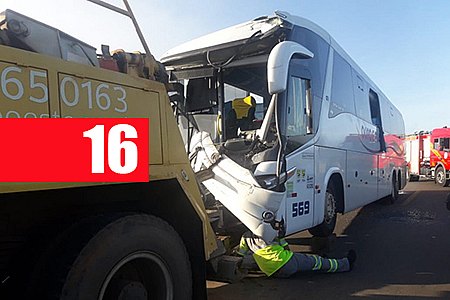 MOTORISTA DE ÔNIBUS FICA PRESO ÀS FERRAGENS APÓS ATINGIR CARRETA