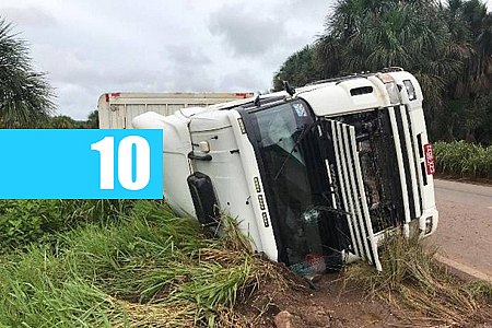 CAMINHÃO CARREGADO DE BOIS QUE VINHA PARA VILHENA É ATINGIDO POR OUTRO EM TRECHO ESBURACADO DA BR 364