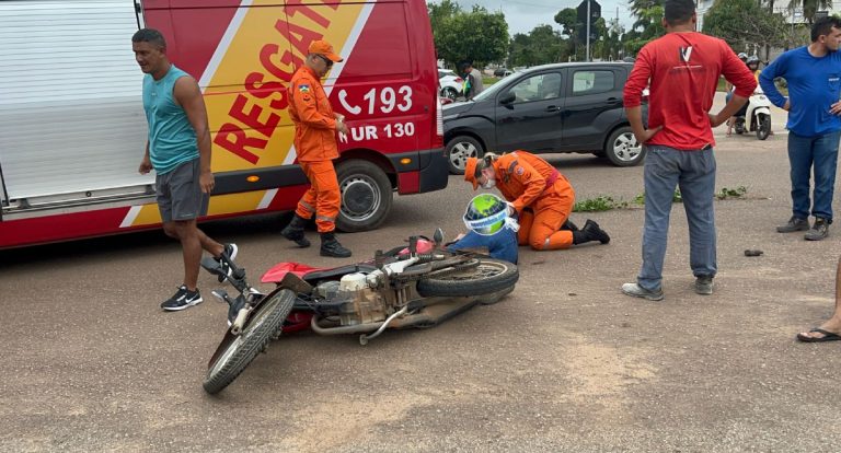 Motociclista sofre fratura grave após colisão frontal com carro em Porto Velho