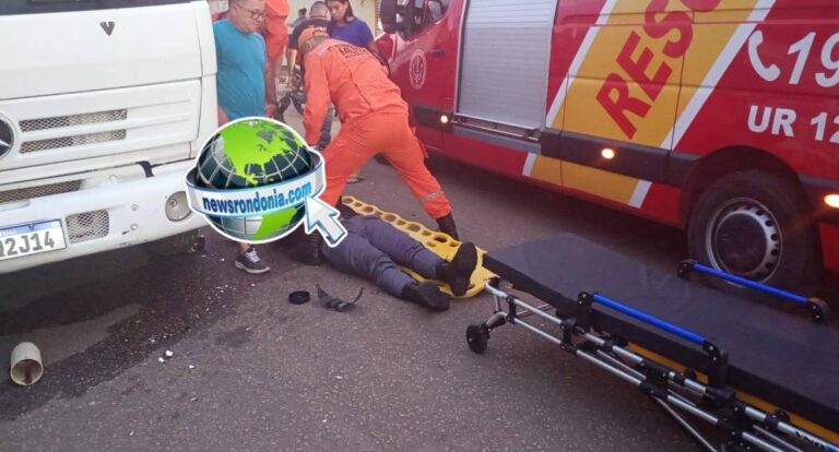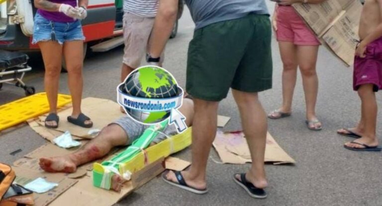 FRATURA EXPOSTA: Motociclista quebra perna em acidente no centro de Porto Velho