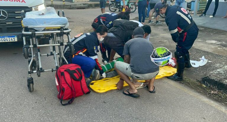 O motoboy, com suspeita de fratura na perna, foi socorrido pelo Samu.