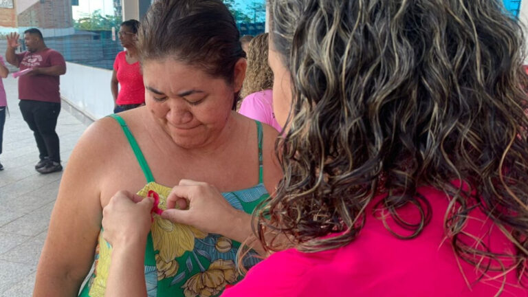 OUTUBRO ROSA – Servidores da Educação recebem laços cor de rosa e orientações sobre a prevenção contra câncer de mama e de colo de útero