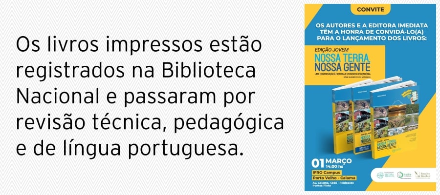 Os livros impressos estão registrados na Biblioteca Nacional, com as seguintes informações: Livro do Aluno – ISBN: 978-65-85197-00-7, 300 páginas; Manual do Professor – ISBN: 978-65-85197-02-1, 117 páginas; Livro Digital – ISBN: 978-65-85197-01-4, 344 páginas.