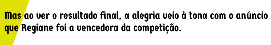 Já no dia da competição, Regiane afirmou que estava muito nervosa e que foi a segunda a se apresentar. Após ver o resultado e a nota 16.250, a pequena achou que era uma pontuação baixa, fazendo com que a mesma ficasse mais nervosa ainda vendo suas colegas se apresentarem.