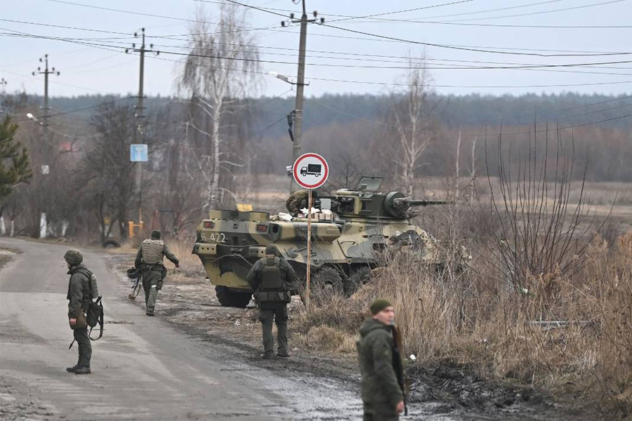 Militares e tanque ucranianos perto da cidade de Kiev, em 24 de fevereiro de 2022 (Foto: Daniel Leal/ AFP)