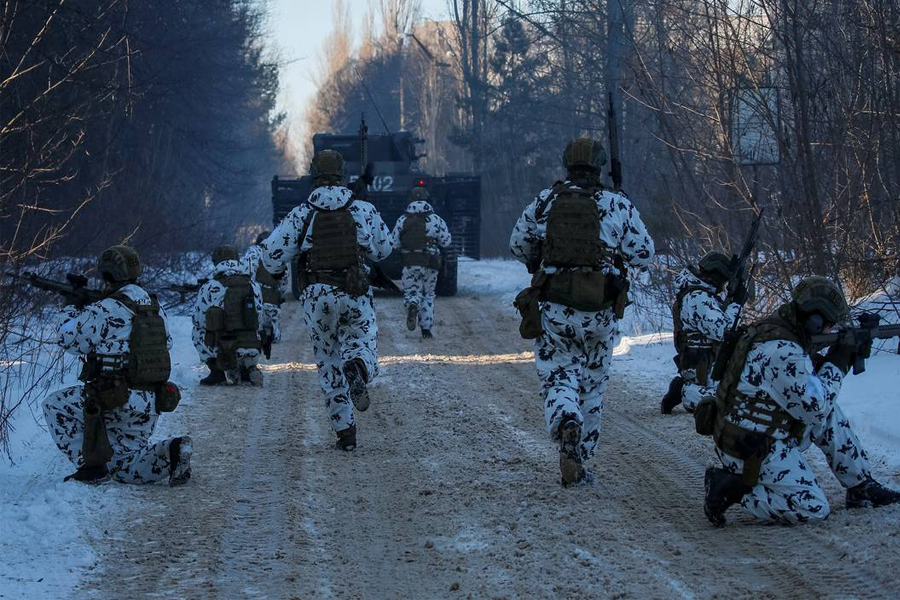 Soldados ucranianos treinam para guerra perto da usina nuclear de Chernobyl em 4 de fevereiro de 2022 (Foto: REUTERS/Gleb Garanich)