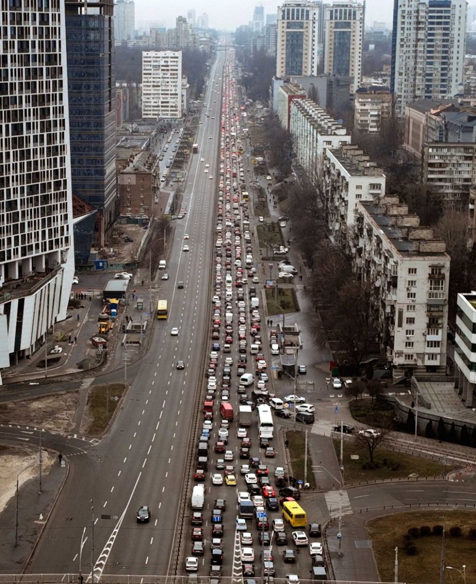 Engarrafamentos na cidade de Kiev, capital da Ucrânia — Foto: Emílio Morenatti/AP