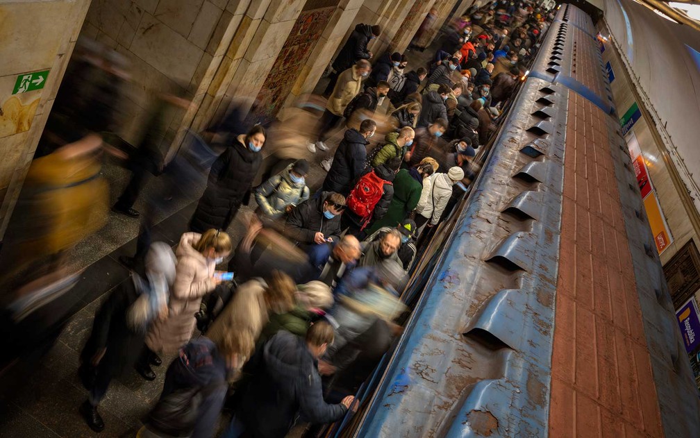 Passageiros lotam estação de metrô em Kiev — Foto: Emilio Morenatti / AP Photo