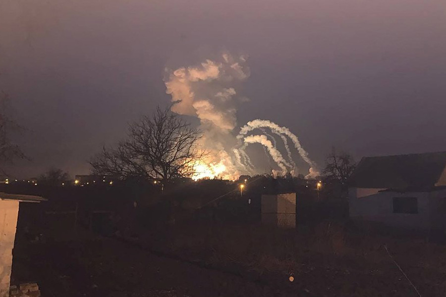 Explosão é vista perto de Dnipro, Ucrânia — Foto: Reuters