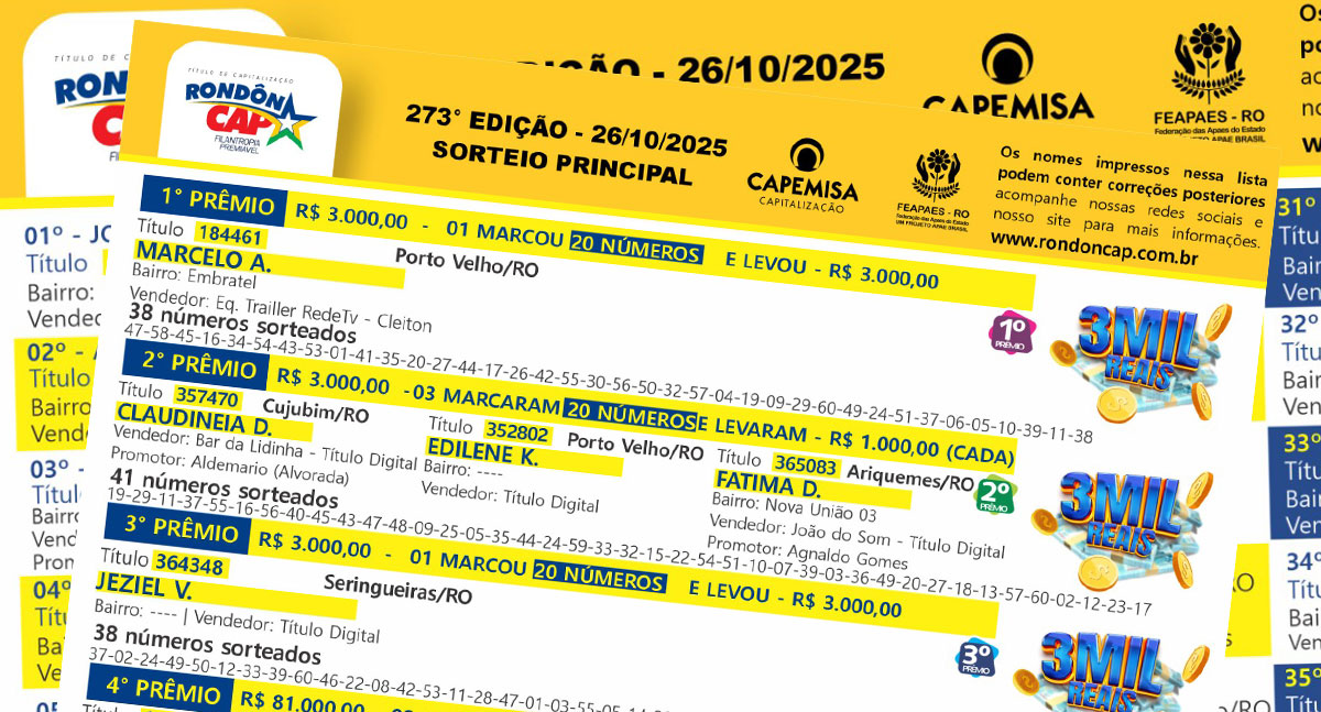 RondônCAP sorteia R$ 110 mil em prêmios e traz 65 meses de salário extra pagos à vista no 4 Prêmio do próximo domingo