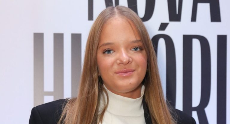 Rafaella Justus participou da pré-estreia do filme “Uma Nova História” em São Paulo, optando por um visual clássico (blazer preto e blusa listrada).