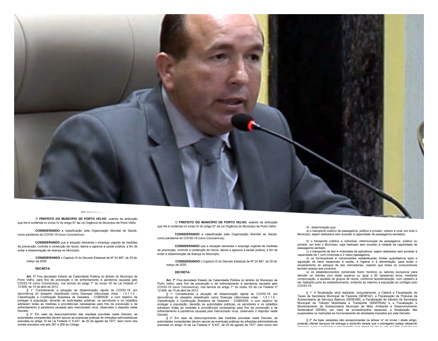 Porto Velho, RO — O presidente da Câmara Municipal de Porto Velho, Edwilson Negreiros, vereador do PSB, anunciou na manhã desta segunda-feira (23): o Decreto de Calamidade Pública apresentado pelo prefeito Hildon Chaves (PSDB) foi aprovado pelo Legislativo municipal.