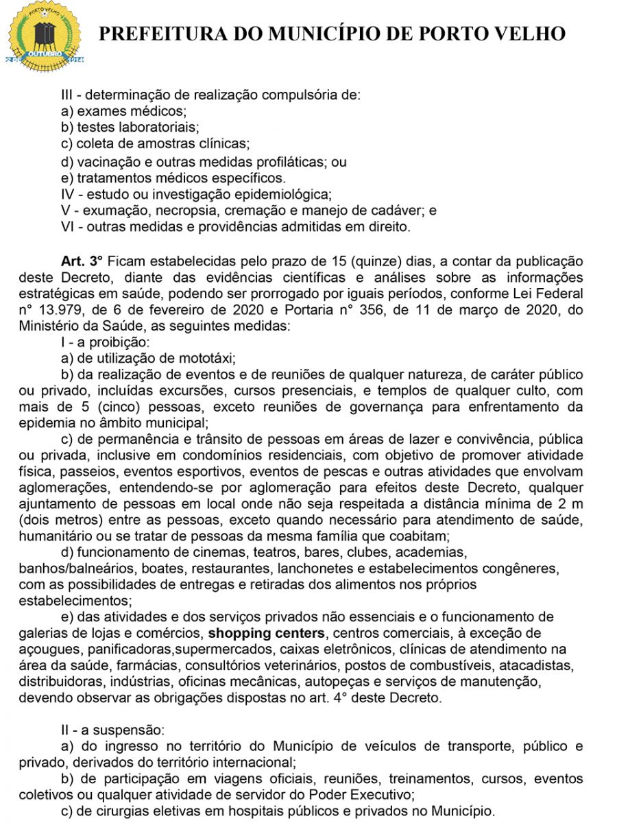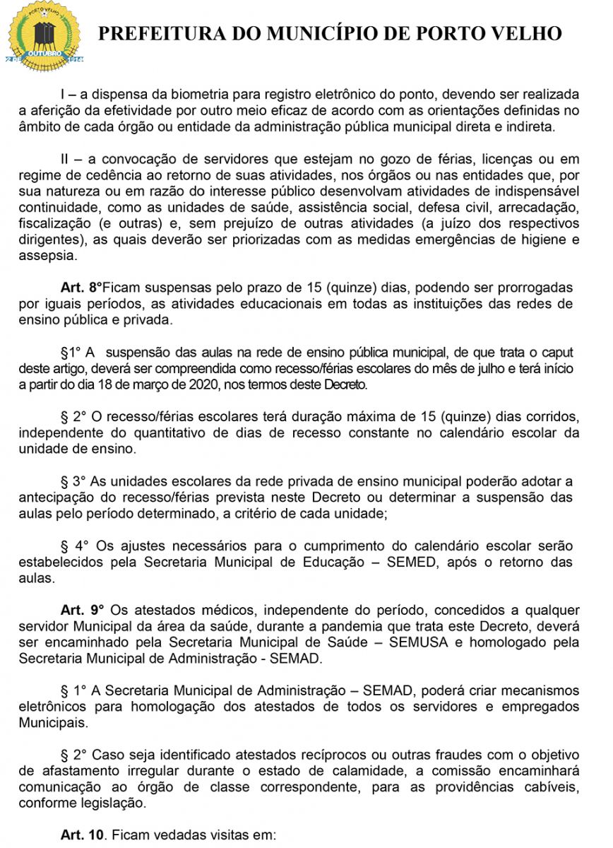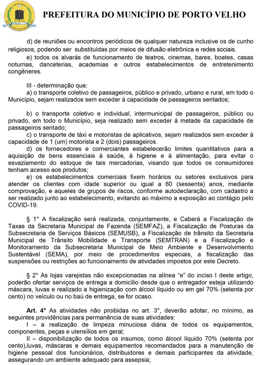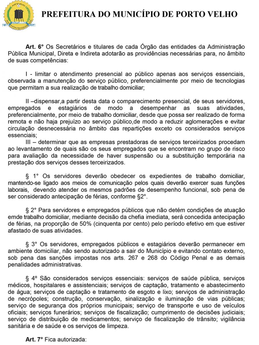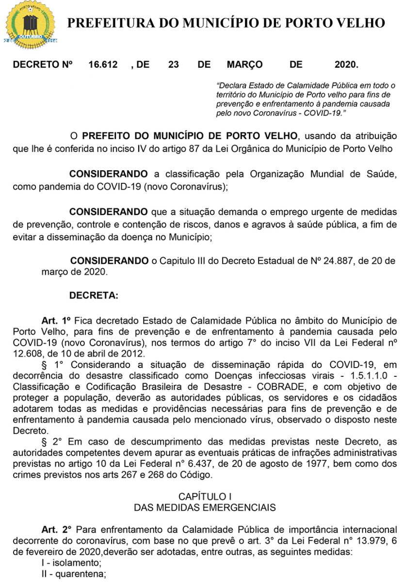CONFIRA ABAIXO A ÍNTEGRA DO DECRETO DE CALAMIDADE PÚBLICA E SAIBA QUAIS SERVIÇOS E ATIVIDADES ESTÃO PROIBIDAS E/OU SUSPENSAS POR PELO MENOS 15 DIAS: