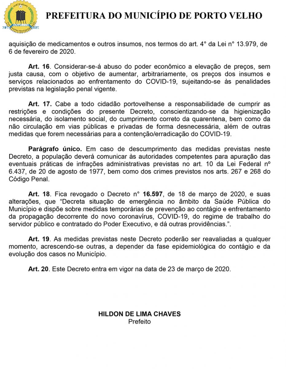 "É importante que as pessoas compreendam a importância de ficarem em casa junto com suas famílias a fim de preservar a vida de todos. Nós somos vetores em potencial, e temos a responsabilidade cívica de preservar os cidadãos encartados ao grupo de risco do Coronavírus. Façamos essa rede de consciência percorrer todos os rincões da cidade de Porto Velho", encerrou o vereador-presidente.
