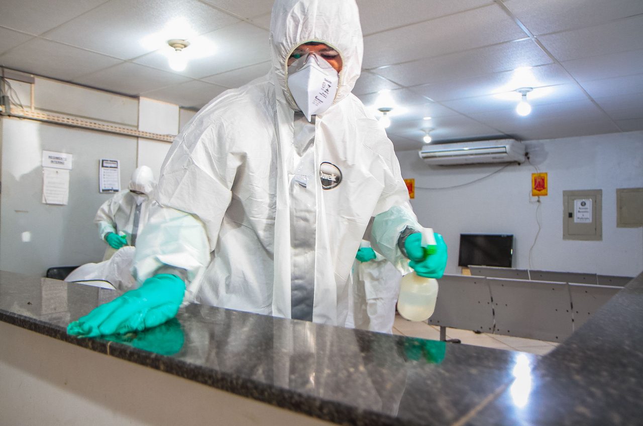 O secretário da Sesdec, José Hélio Cysneiros Pachá, estava acompanhando a desinfecção da Central de Flagrantes e explicou que os trabalhos que são oferecidos no local foram transferidos para a Unidade Integrada de Segurança Pública (Unisp) Centro. “A 17ª Brigada atendeu nosso pedido, nós adquirimos os materiais de proteção individual e as máscaras foram cedidas pela Sesau (Secretaria de Estado da Saúde), e também adquirimos por suplemento de fundo os macacos de proteção”, explica o secretário de Segurança.