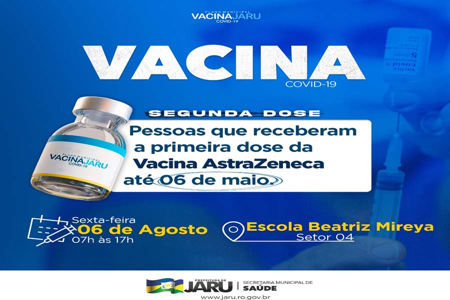 Nesta sexta-feira (06), a prefeitura de Jaru, realiza mais uma ação para a aplicação da 2ª dose da AstraZeneca.