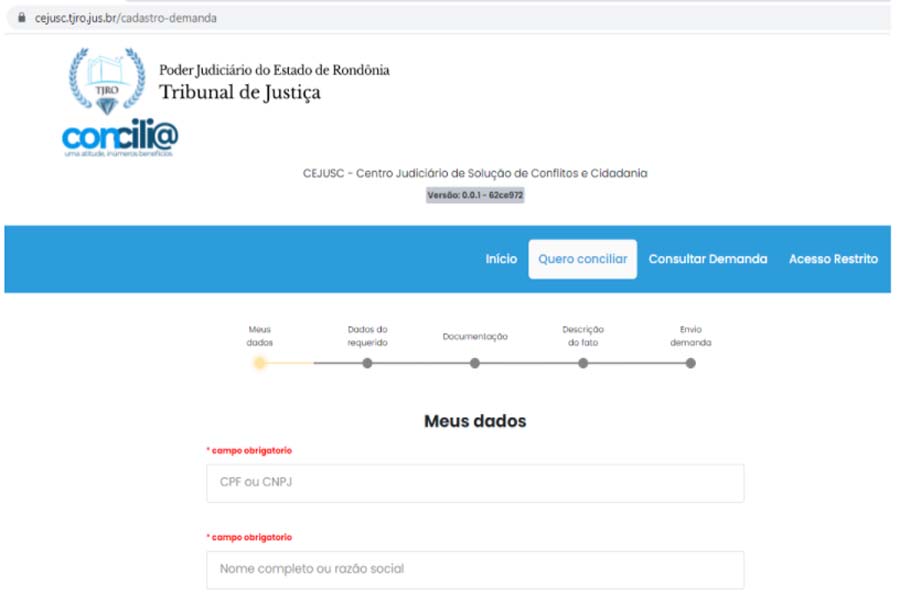 Para tentar um acordo, qualquer pessoa interessada pode acessar o link https://cejusc.tjro.jus.br/cadastro-demanda e preencher os dados para enviar a demanda.