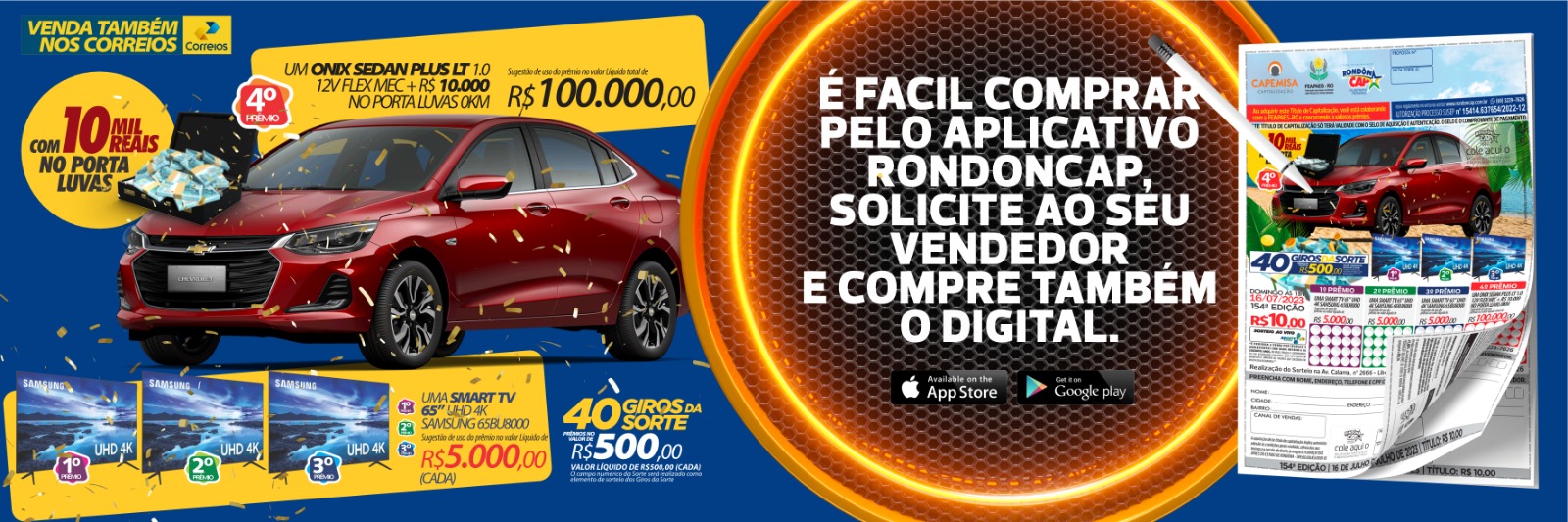 O Rondôncap quer ver você viajar neste mês de férias! Domingo tem um carro com porta-malas grandão para caber a bagagem da família toda! No quarto prêmio tem um Onix sedan com 10.000 reais no porta-luvas no valor total de 100.000 reais!