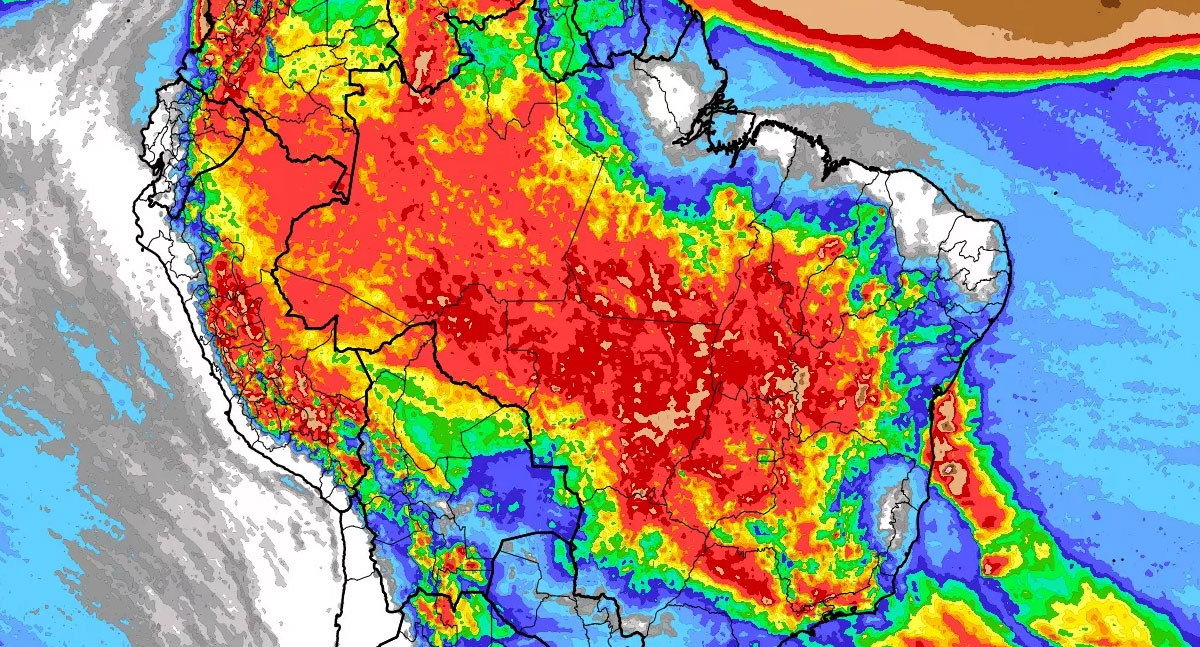 No restante do país, as chuvas devem ocorrer com regularidade, inclusive com maiores volumes entre o Centro-Oeste e o Norte, onde se destacam Amazonas, Acre, Rondônia e Roraima com os maiores acumulados.