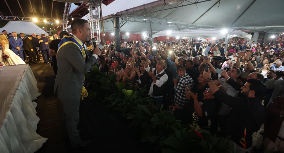 Em seguida, ele pediu para retirar as grades que separavam os populares da área onde ocorria a solenidade conduzida pela Câmara Municipal. “Sou uma ferramenta de transformação de nossa Porto Velho, com certeza Deus nos conduziu até aqui. Isso me traz uma responsabilidade muito grande. Tenho um peso sob os ombros enorme, mas temos o compromisso de retirar Porto Velho dos piores índices de desenvolvimento”, apontou.