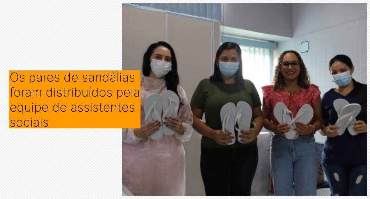 No Pronto Atendimento Ana Adelaide, os pares de sandálias foram distribuídos pela equipe de assistentes sociais, responsáveis por encaminhar os itens aos pacientes em situação de vulnerabilidade.