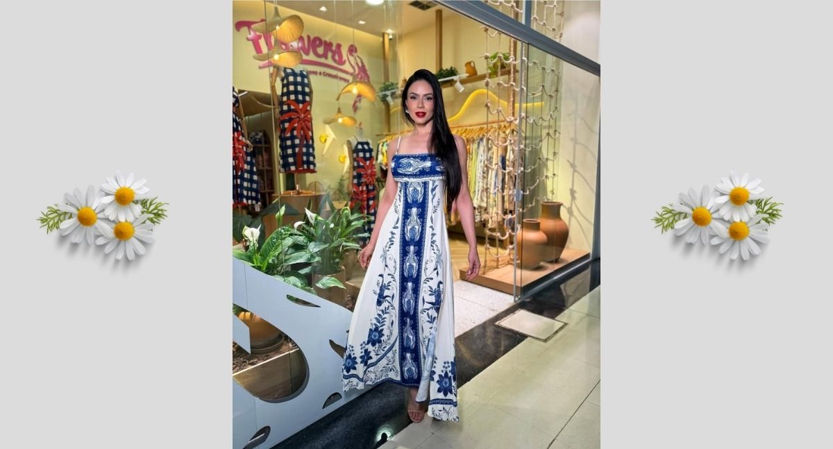 Nesta peça, a estampa com detalhes em azul, florais e arabescos, cria um efeito visual sofisticado e alongador. O tecido fluido é ideal para dias quentes, e o corte valoriza a silhueta com naturalidade. Um look que transmite frescor, feminilidade e personalidade, sendo uma escolha segura e chique.