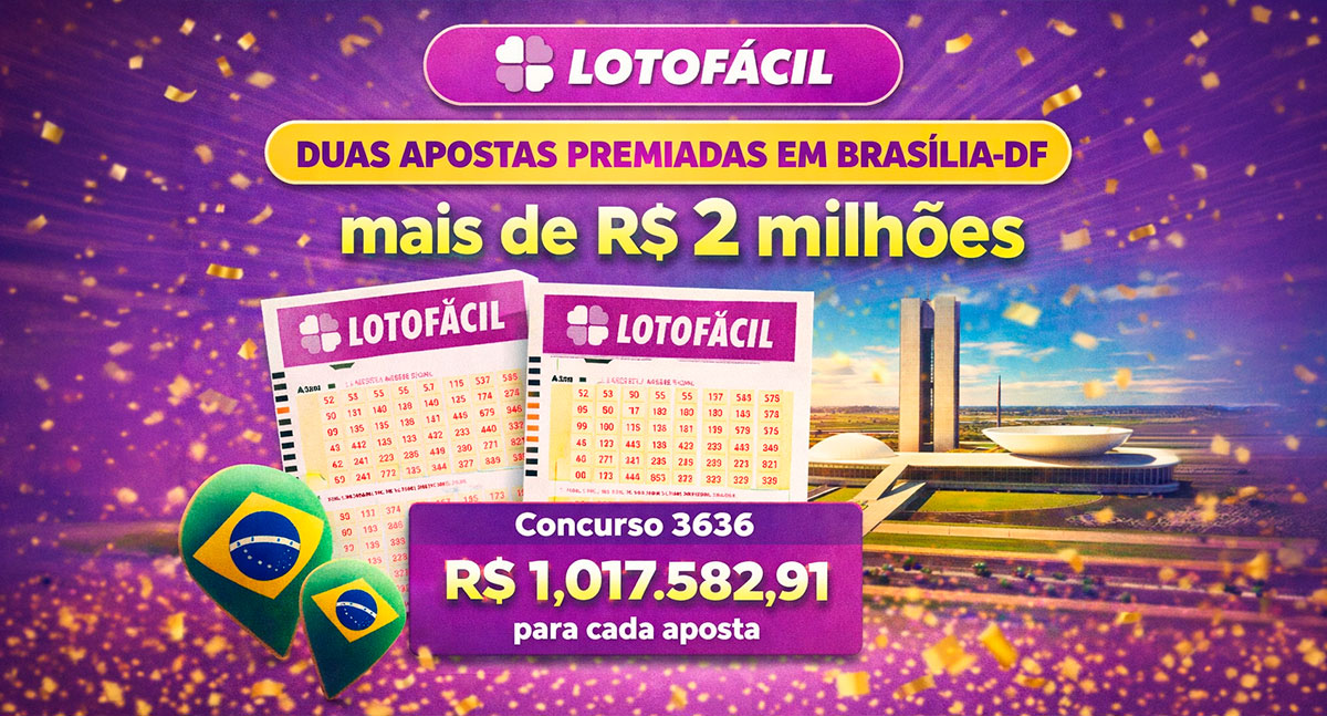 Duas apostas registradas na mesma cidade foram as grandes vencedoras do concurso 3636 da Lotofácil, realizado na noite deste sábado (14). Os dois bilhetes acertaram as 15 dezenas sorteadas e dividiram o prêmio principal, que ultrapassou R$ 2 milhões.