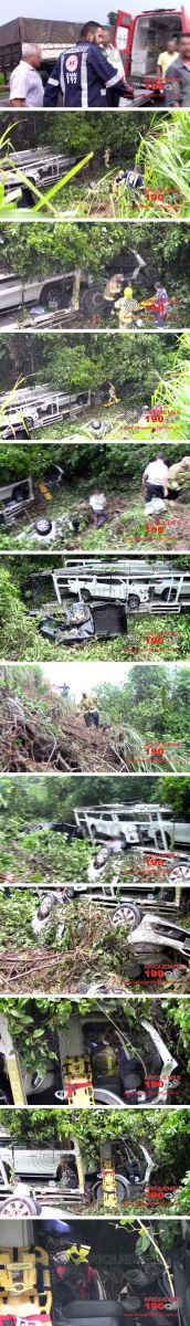 Os quatro veículos tiveram avarias, porém a Hilux preta e o Prisma foram mais destruídos. O condutor do caminhão apresentava escoriações e sentia fortes dores nas costas. Equipes do Serviço de Atendimento Móvel de Urgência (SAMU) e Corpo de Bombeiros estiveram no local, onde ao prestar socorro a vítima, utilizaram de uma maca do tipo Sked para retirar a vítima da ribanceira, em seguida conduzir ao hospital municipal.