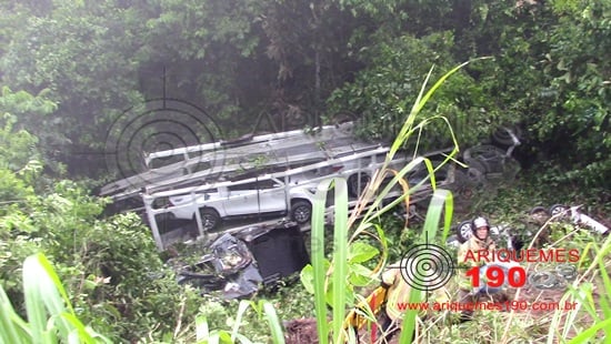 O capotamento seguido de queda em ribanceira aconteceu na tarde desta quinta-feira 18/10. O condutor de um caminhão cegonha transitava pela BR-364, Km-531, de Ariquemes sentido Porto Velho, quando a barra de direção quebrou fazendo o condutor perder o controle da direção do veículo.