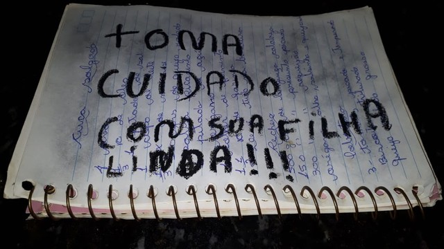 Depois de furtar a casa de uma família, um ladrão usou uma lápis de maquiagem para escrever um bilhete e ameaçar uma adolescente de 12 anos em Cacoal (RO). "Toma cuidado com sua filha linda!!!", diz a mensagem deixada no caderno de receitas da mãe, proprietária do imóvel.