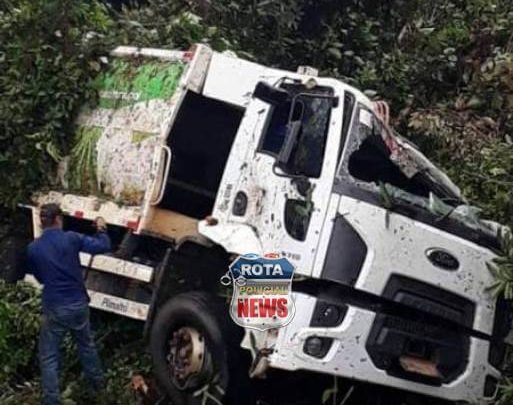 Um caminhão de lixo que pertence a Prefeitura Municipal de Chupinguaia/RO estava deslocando-se para o aterro sanitário da cidade de Vilhena/RO, para realizar o descarregamento da carga, momento em que o motorista perdeu o controle da direção, saiu da rodovia e tombou em uma ribanceira.