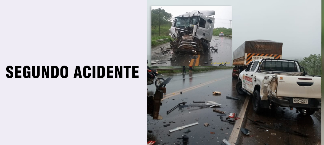 O segundo acidente ocorreu logo em seguida, praticamente no mesmo local, há poucos metros. Devido a chuva e muita pouca sinalização, carretas e veículos, inclusive uma caminhonete da FETAGRO, se envolveram em um engavetamento. Não há notícias de vítimas, apenas danos materiais.
