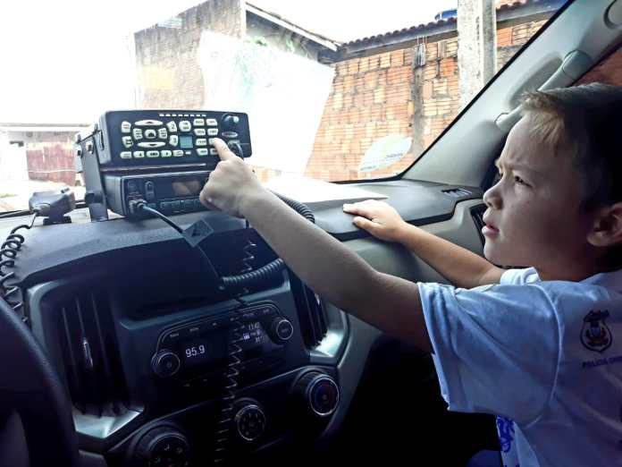 Ainda durante a surpresa, João Pedro ganhou uma camisa do projeto “De Cara Limpa Contra as Drogas” e “patrulhou” em uma viatura do Garra.