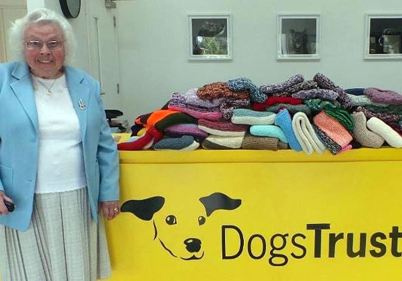 “Isso me mantém ocupada e muitas vezes gosto de tricotar enquanto vejo televisão”, disse Maisie Green. Ela recebeu uma homenagem este mês do Dogs Trust, uma instituição de caridade de 127 anos que trabalha para encontrar lares para cães no Reino Unido.