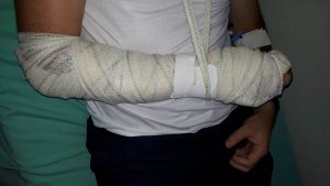 Ao se ver cercado, Marcos levantou o veículo e avançou contra o militar, que desembarcava da viatura, tendo este sofrido a referida fratura em um dos ossos do antebraço direito.