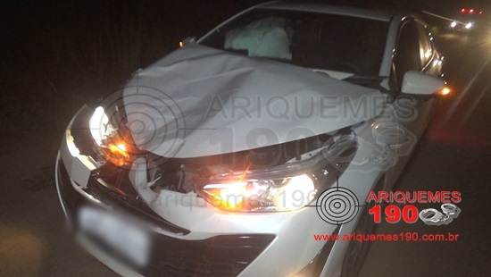 Ariquemes, RO – Na noite desta terça-feira 22/01, a guarnição do Corpo de Bombeiros foi acionada a comparecer na RO-257 sentido Machadinho do Oeste, para atender um acidente de trânsito. No local, os Militares se depararam com a vítima relatando que transitava pela rodovia, momento quem um bezerro invadiu a pista e a condutora acabou atingindo o animal.
