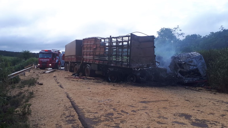Um motorista morreu carbonizado na manhã desta sexta-feira (25) após um acidente entre duas carretas na BR-364 em Alto Araguaia, a 426 km de Cuiabá. Por causa da colisão, a pista na rodovia foi bloqueada. A vítima não teve a identidade divulgada.