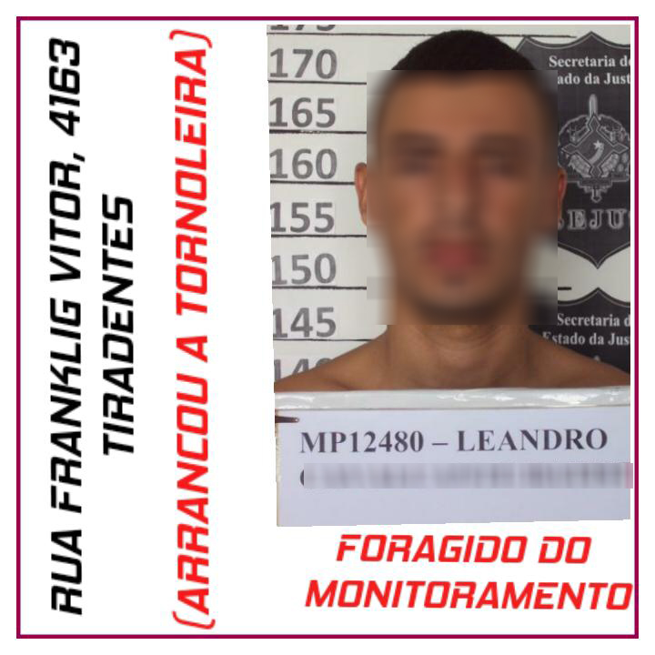 Feito pesquisa nominal foi verificado que Leandro estava constando como foragido do sistema prisional após quebrar a tornozeleira eletrônica de monitoramento. Ele foi preso e levado para a central de polícia.
