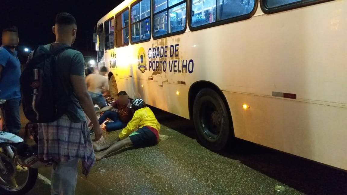 Um motociclista ficou ferido na noite da quinta-feira (7), em um acidente envolvendo um ônibus coletivo, na Avenida Mamoré com a Rua Pimenteiras, bairro JK, zona Leste de Porto Velho. Com o impacto da batida, a vítima foi arremessada para baixo do ônibus.
