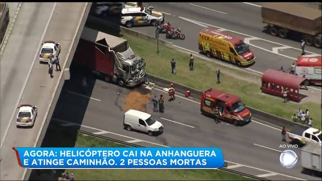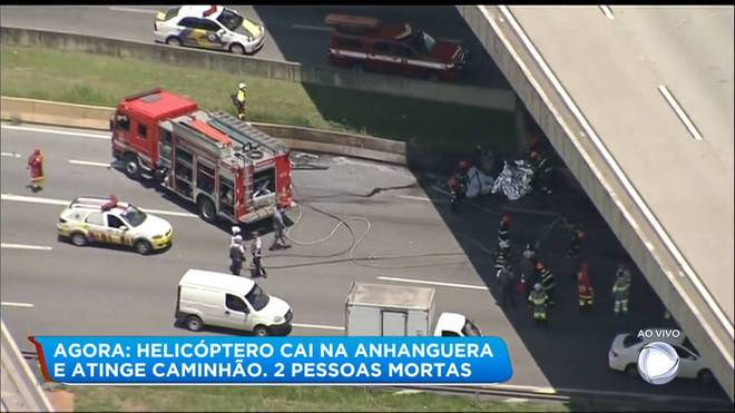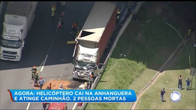 Um helicóptero caiu sobre um caminhão que trafegava na ligação do Rodoanel com a rodovia Anhanguera, em São Paulo, nesta segunda-feira (11). Segundo o Corpo de Bombeiros, o piloto e o copiloto morreram carbonizados e o motorista do caminhão ficou ferido.