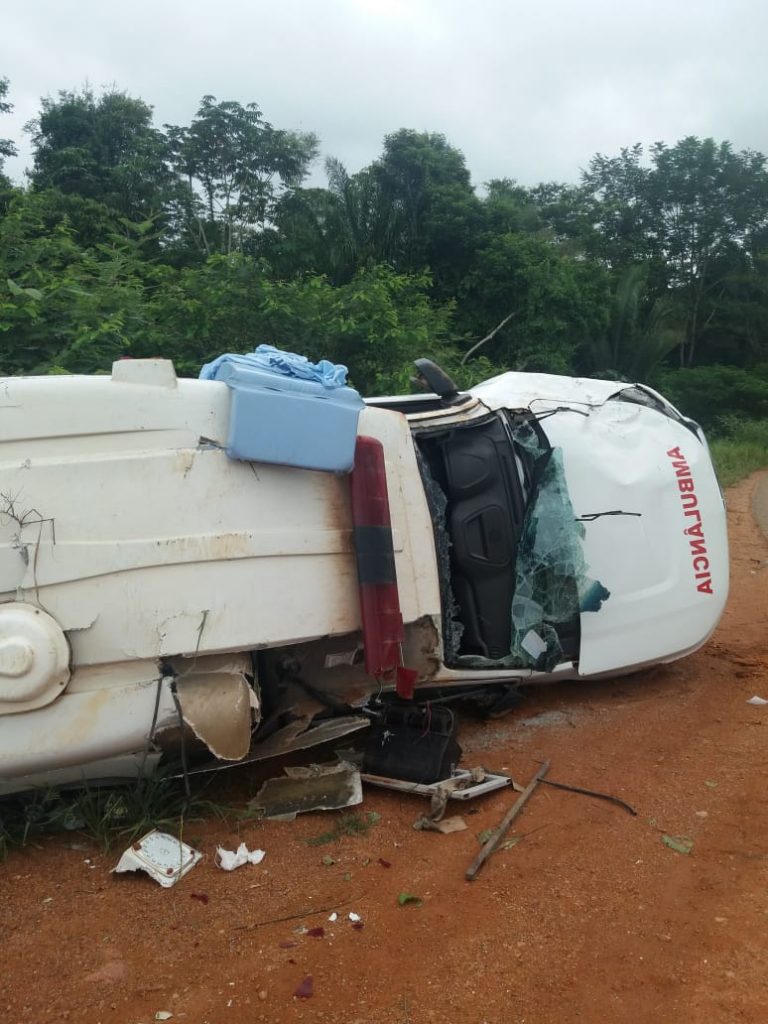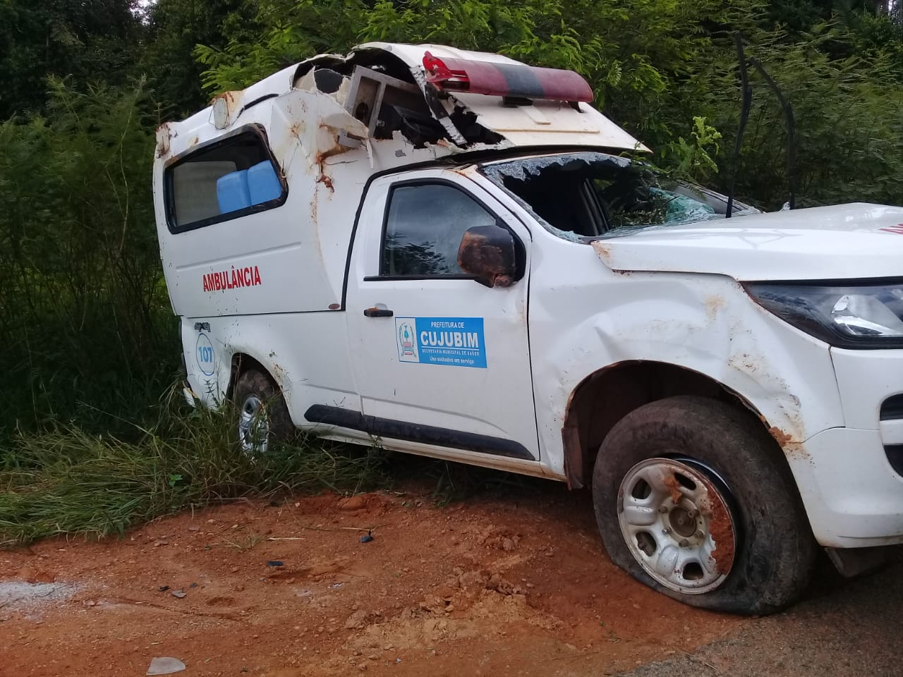 A ambulância do município de Cujubim que seguia para porto velho neste domingo, 10/02, capotou na curva da RO-205 cerca de 5 kilômetros da cidade. No veículo estavam o motorista que levava uma paciente com duas acompanhantes.