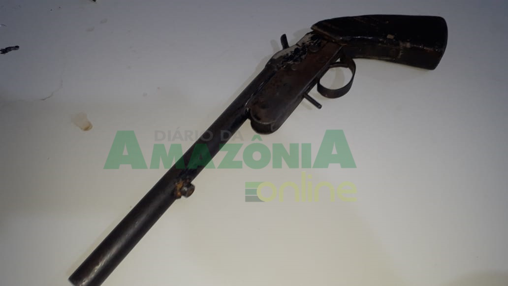 Durante a revista pessoal, foi localizado uma arma de fogo de fabricação caseira, calibre 36, e em uma breve pesquisa na placa da motocicleta, foi constatado que se tratava de uma Biz de cor azul, com restrição de roubo conforme ocorrência registrada em 16 de fevereiro de 2019.
