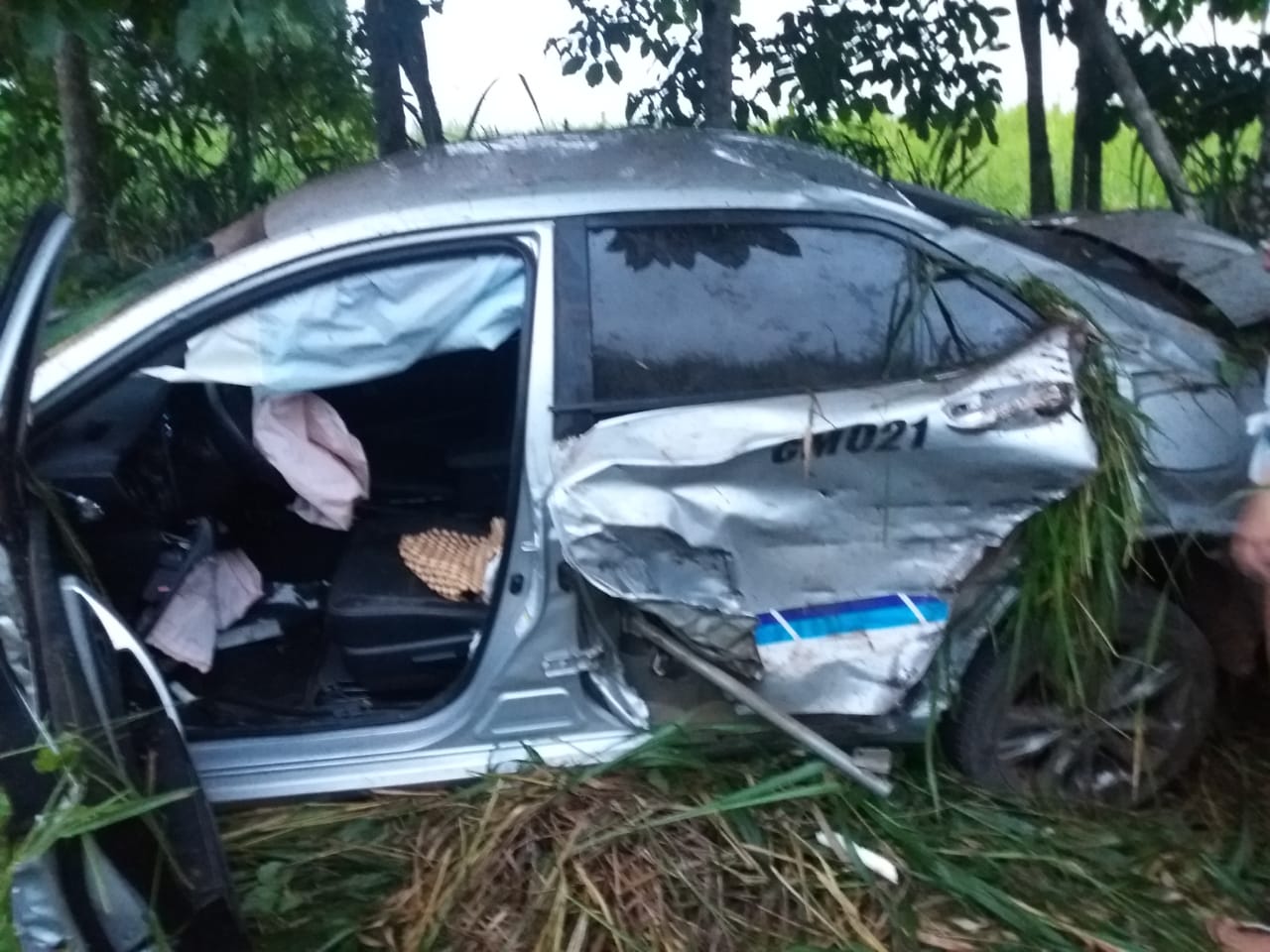 No choque, o automóvel capotou e foi parar no meio do mato, todos os passageiros dormiam no momento do acidente, e usavam o cinto de segurança. O táxi pertence Robson Laerte, mas era conduzido por outro motorista que ainda não teve o nome divulgado.