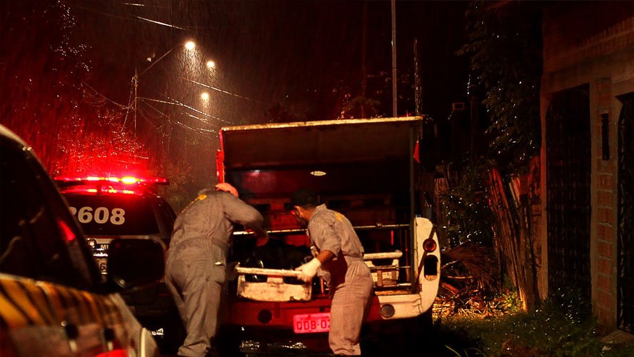 Após nova discussão, a mulher pegou uma faca do tipo peixeira e desferiu um único golpe no lado esquerdo do peito da vítima. A mulher, então, correu para a rua para pedir ajuda dos vizinhos.
